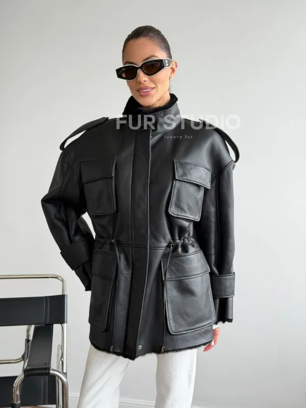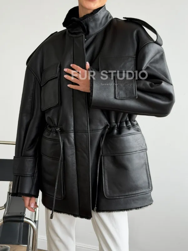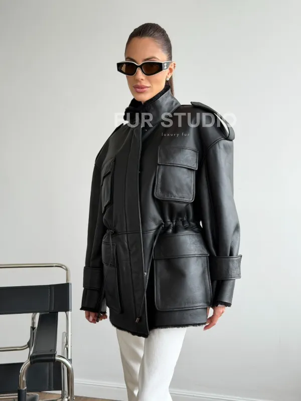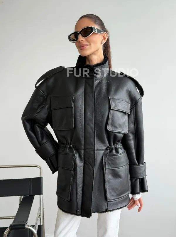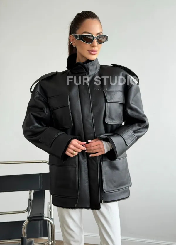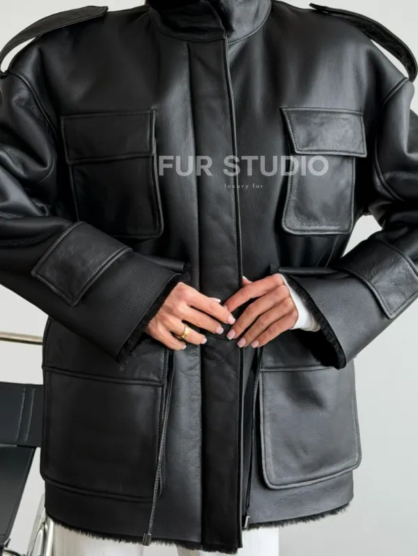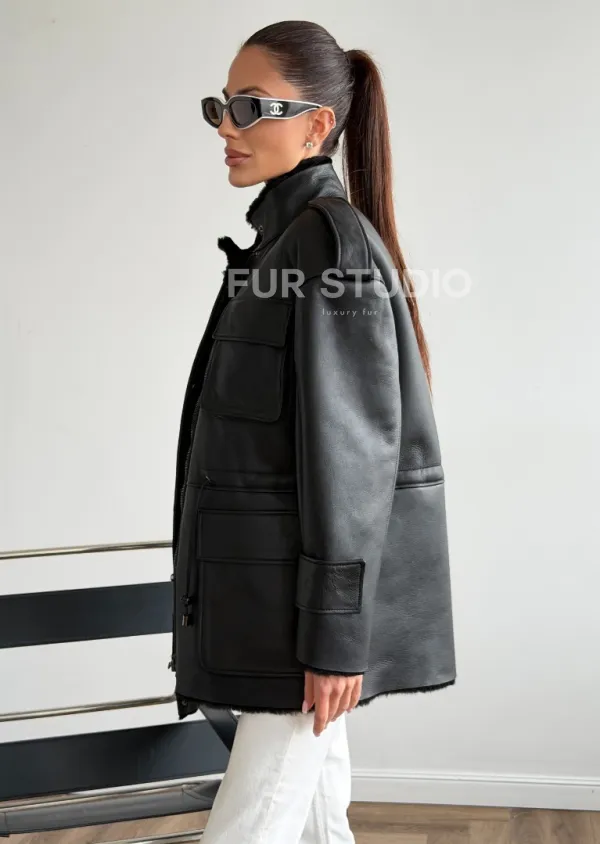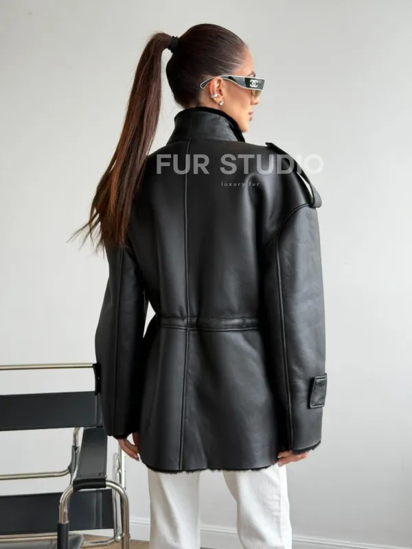 Черная куртка - дубленка из испанского мериноса 102619