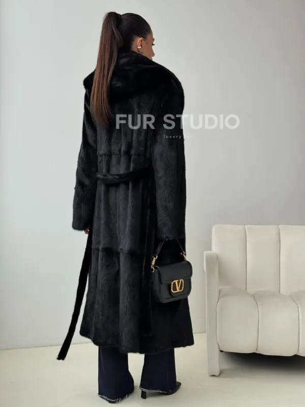 Мех данной шубы аукционная норка , цвет черный. Предлагается в размерах от 42 до 52. Длина модели 115-120 см, что выгодно подчеркивает фигуру девушек. Эта модель идеально подойдет для девушек и женщин, предпочитающих роскошные натуральные меха.