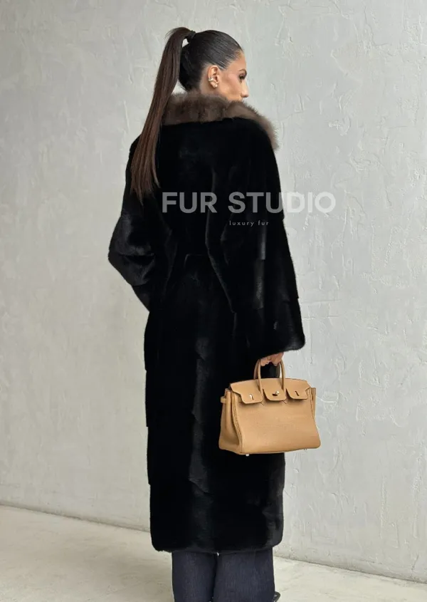 Черная норковая шуба - воротник куница 102451