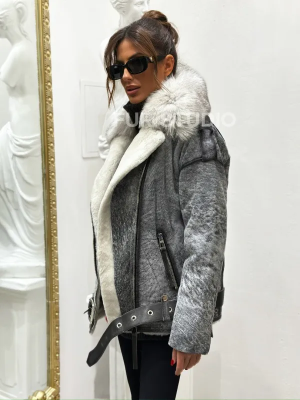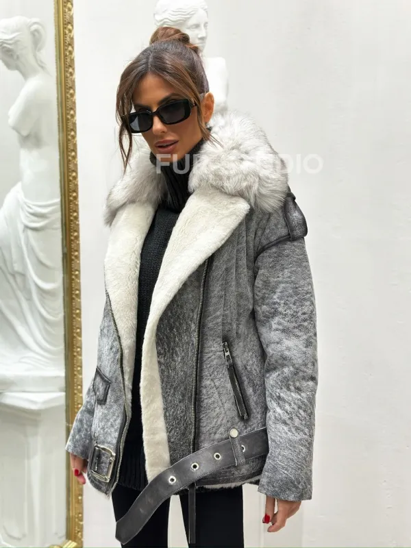 Дубленка - авиатор из винтажной кожи - модель, которая будет оценена по достоинству современными модницами. Авиатор - бессменный хит последних сезонов. Модель смотрится стильно, необычно и молодежно. Винтажная кожа придает образу дерзости и экстравагантности. Огромный выбор размеров от 40 до 54 позволяет приобрести дубленку женщинам с любой фигурой.