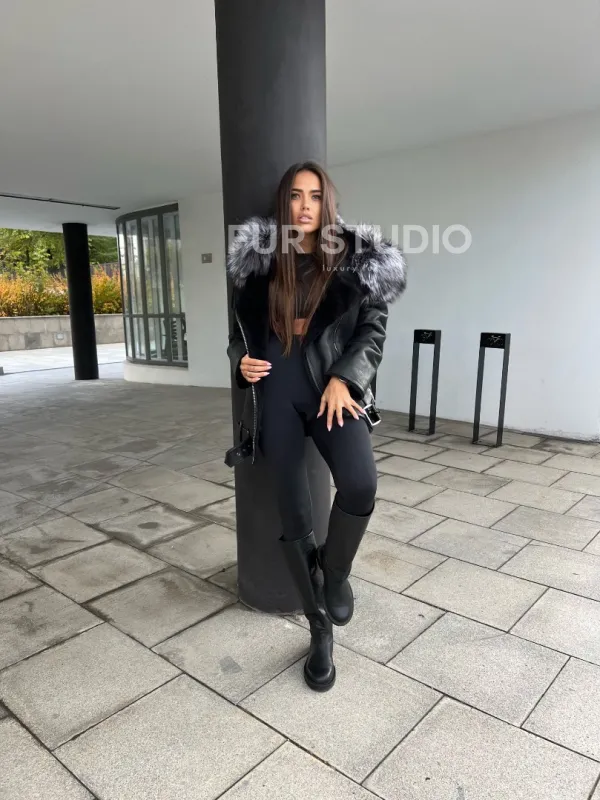Дубленка – косуха с капюшоном из меха чернобурой лисы – выбор современных девушек, идущих в ногу со временем. Косуха – тренд последнего столетия. Модель выглядит дорого и роскошно. Кожа приятна на ощупь и не требует дополнительного ухода, а ее качество будет радовать владелицу не один год. Мех овчины не даст замерзнуть в прохладное время года.