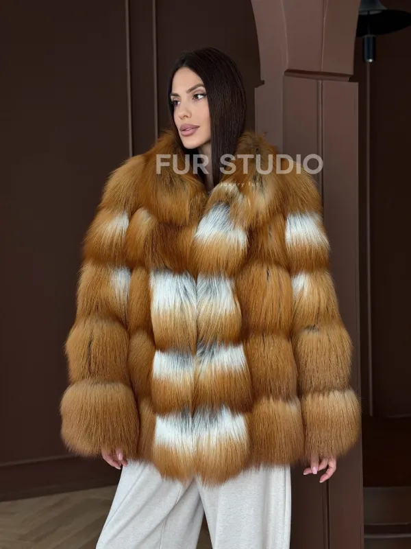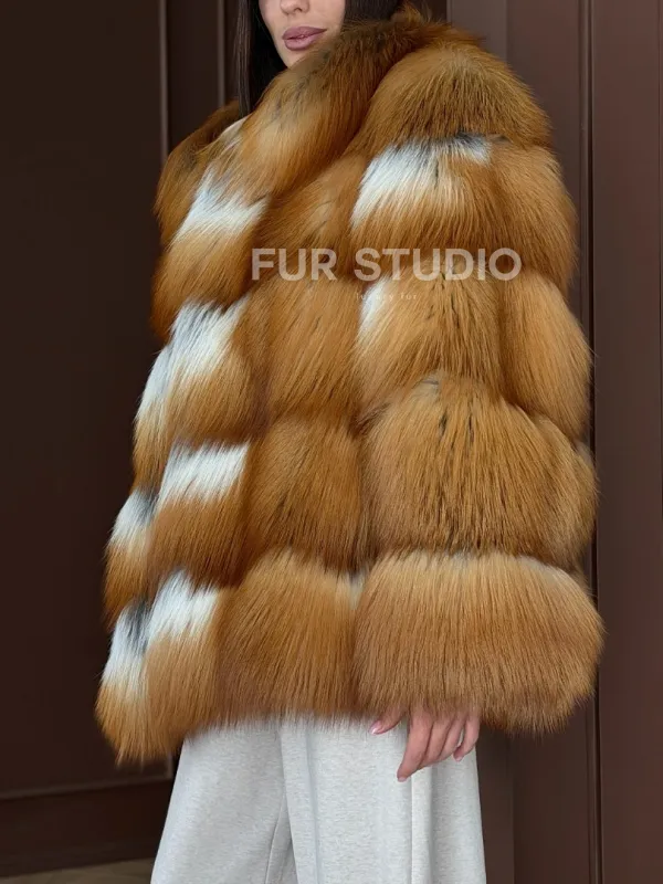 Короткая шуба из рыжей лисы 102903