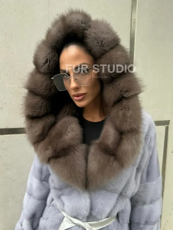 Шуба норковая с капюшоном из меха куницы - цвет голубой доступна для покупки в нашем шоуруме Furs Studio в . У нас так же есть доставка во все города России. Добавьте немного роскоши в свой гардероб с этой шубой, которая будет служить вам многие годы.