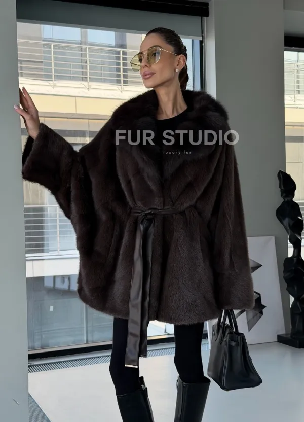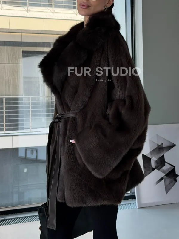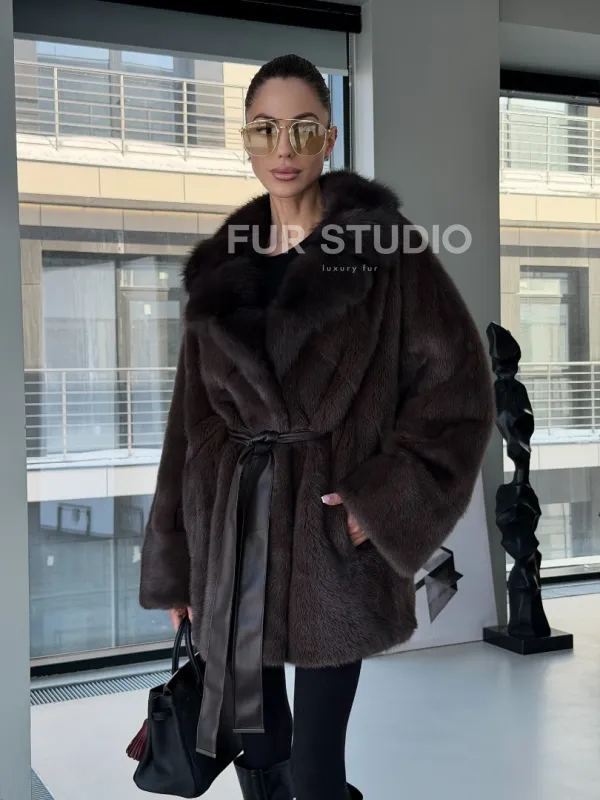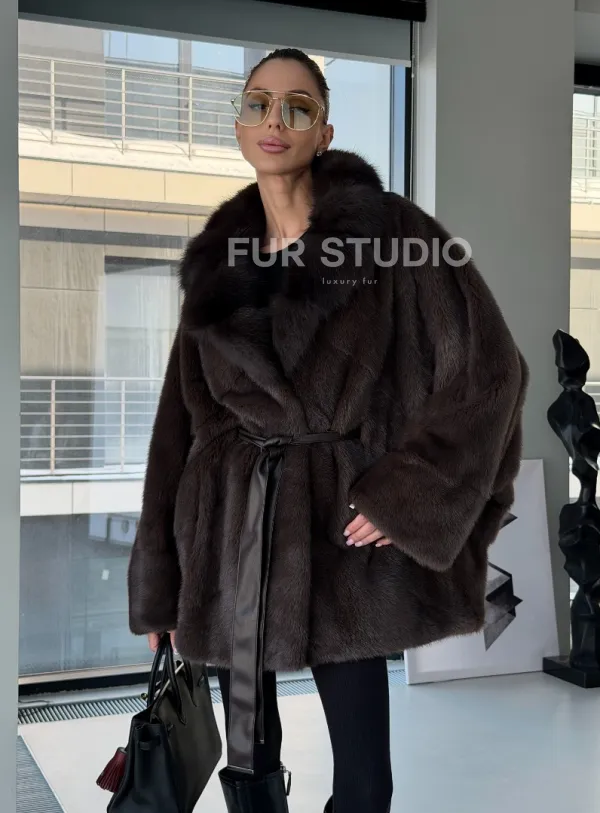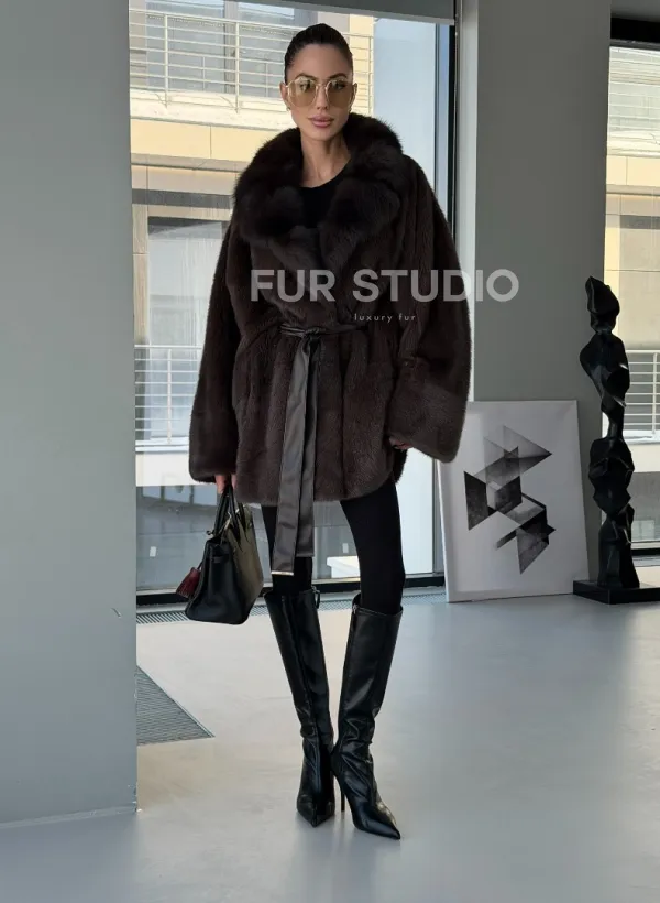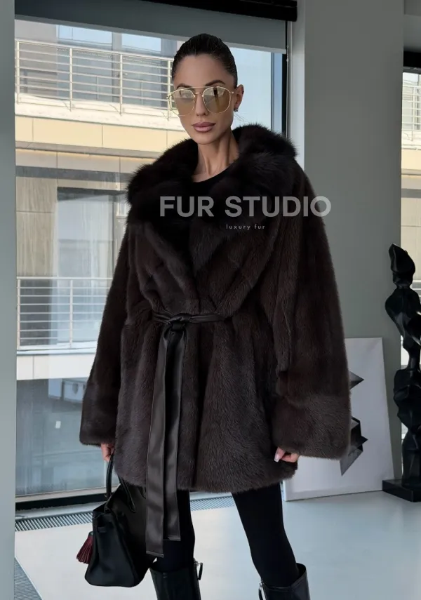 Норковое автоледи с воротником из куницы 102894