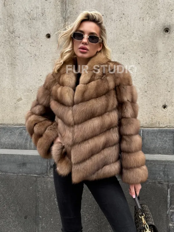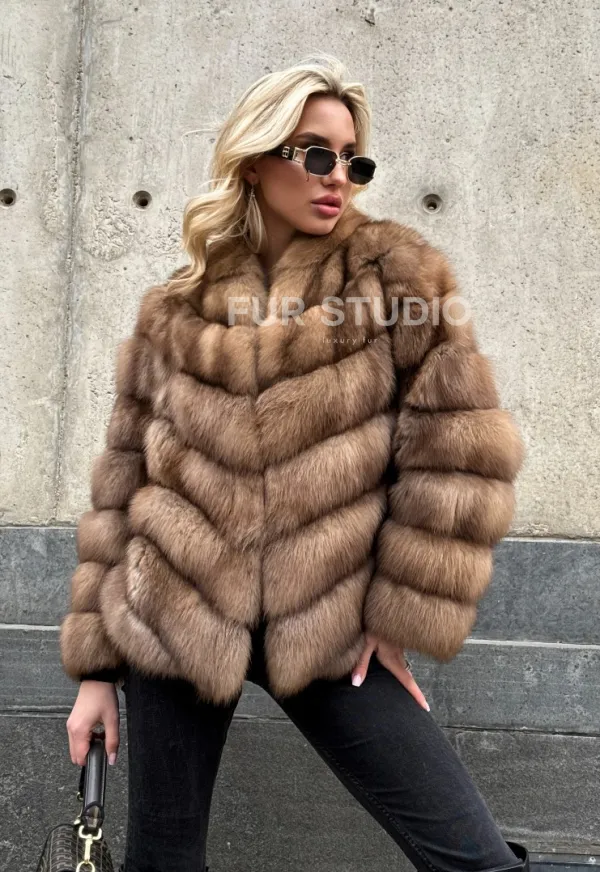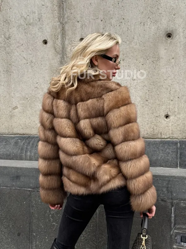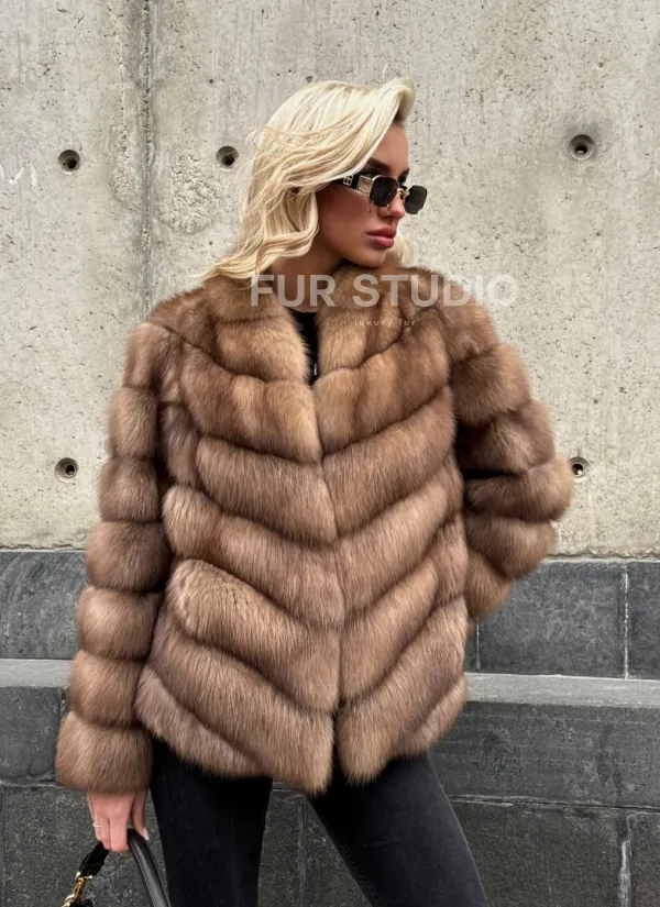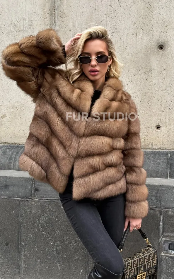 Мех данной шубы лесная куница, цвет натуральный. Предлагается в размерах от 40 до 44. Длина модели 55-60 см, что выгодно подчеркивает фигуру девушек. Эта модель идеально подойдет для девушек и женщин, предпочитающих роскошные натуральные меха.
