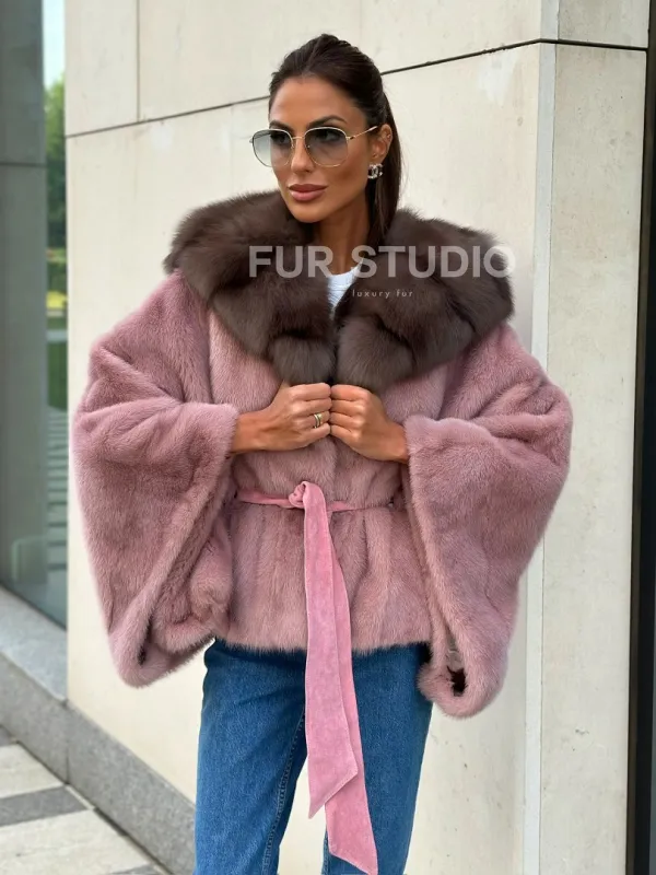 Мех данной шубы аукционная норка, цвет розовый. Предлагается в размерах от 40 до 50. Длина модели 50-55 см, что выгодно подчеркивает фигуру девушек. Эта модель идеально подойдет для девушек и женщин, предпочитающих роскошные натуральные меха.