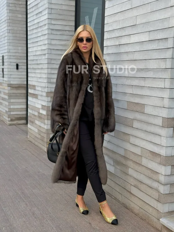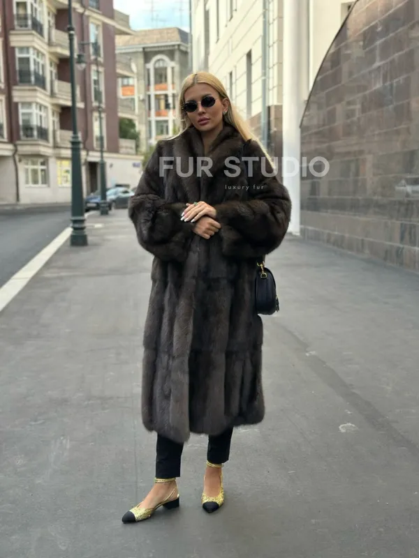 Воротник шаль согреет шею в непогоду и подчеркнет ее изгибы. Широкие рукава делают акцент на тонкости кистей. Изделие отлично сочетается с классикой, стилем casual, подойдет под вечерний look. В модели вы будете выглядеть дорого и лаконично. Купить шубу из меха соболя воротник шаль – стоящее вложение в себя, в такой верхней одежде вы постоянно будете ловить восхищенные взгляды.