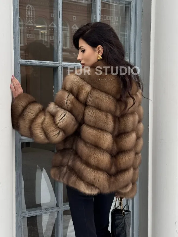 Шуба из меха куницы с V-образным воротником доступна для покупки в нашем шоуруме Furs Studio в . У нас так же есть доставка во все города России. Добавьте немного роскоши в свой гардероб с этой шубой, которая будет служить вам многие годы.