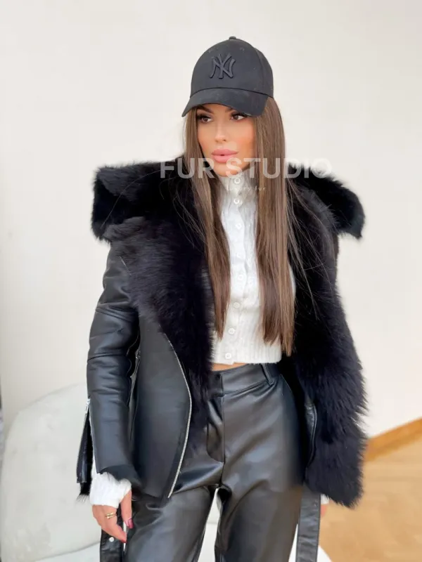Стильная дубленка с капюшоном из овчины тоскана 100177