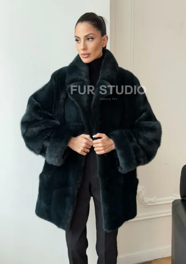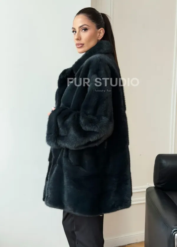 Зеленая норковая шуба - жакет 102731